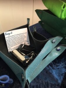 Haushalten und Reisen mit Stil. Als Schlüsselablage, Schmuckkästchen oder auf dem Schreibtisch. Für etwas mehr Ordnung zuhause und unterwegs. Die Vide-poche wird zu deinem unverzichtbaren Reiseutensil. Mit dem Druckknopfsystem passt es in jede Reisetasche und du hast es immer dabei. Hochwertige Materialien, garantieren viele Jahre Freude. Auch als besondere und unvergessliche Geschenkidee, ist der Taschenleerer mit dem WOW-Effekt für jeden Anlass sehr geeignet.